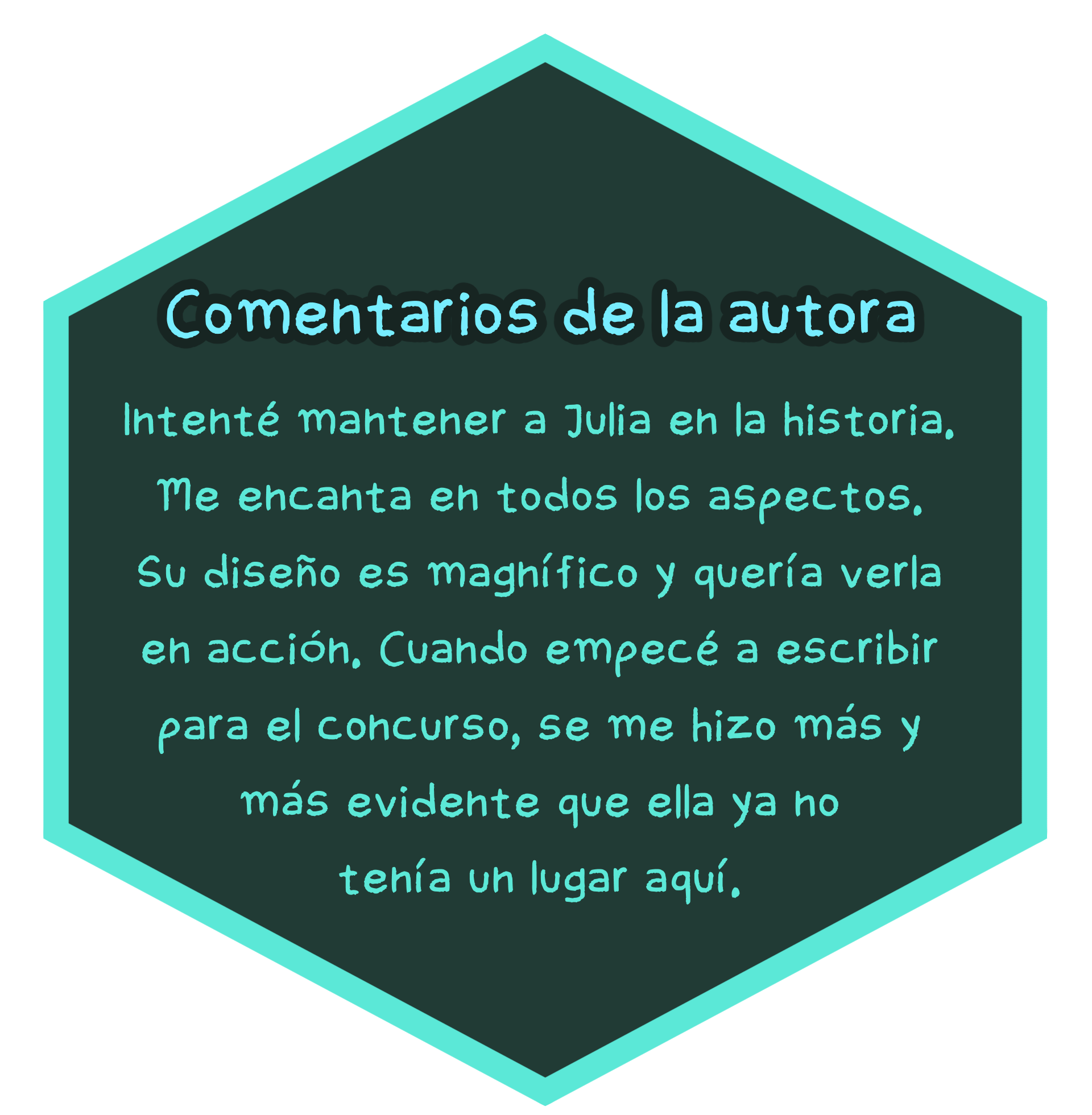 Al final Julia aprendería a lidiar con sus problemas y a cómo comunicarse de forma efectiva. Este dibujo representa la primera escena en que la autodestrucción de Julia no era una presencia más, por primera vez. La autora cree que alguien puede amarse a ella misma gracias al amor de otra persona y Julia seguiría este camino.