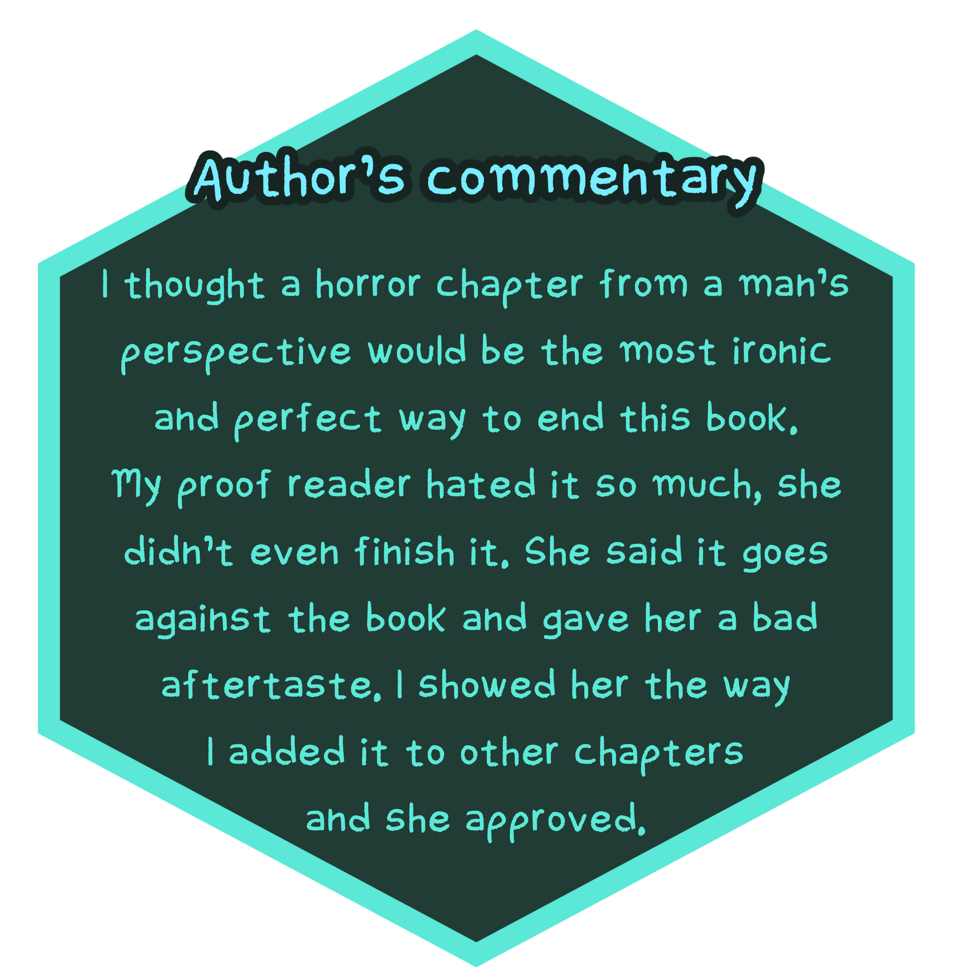 The 'horror chapter' was not added due to conflicts with the entire book. Its ghost remains in multiple lines of dialogue and even an entire page in one of the final chapters.